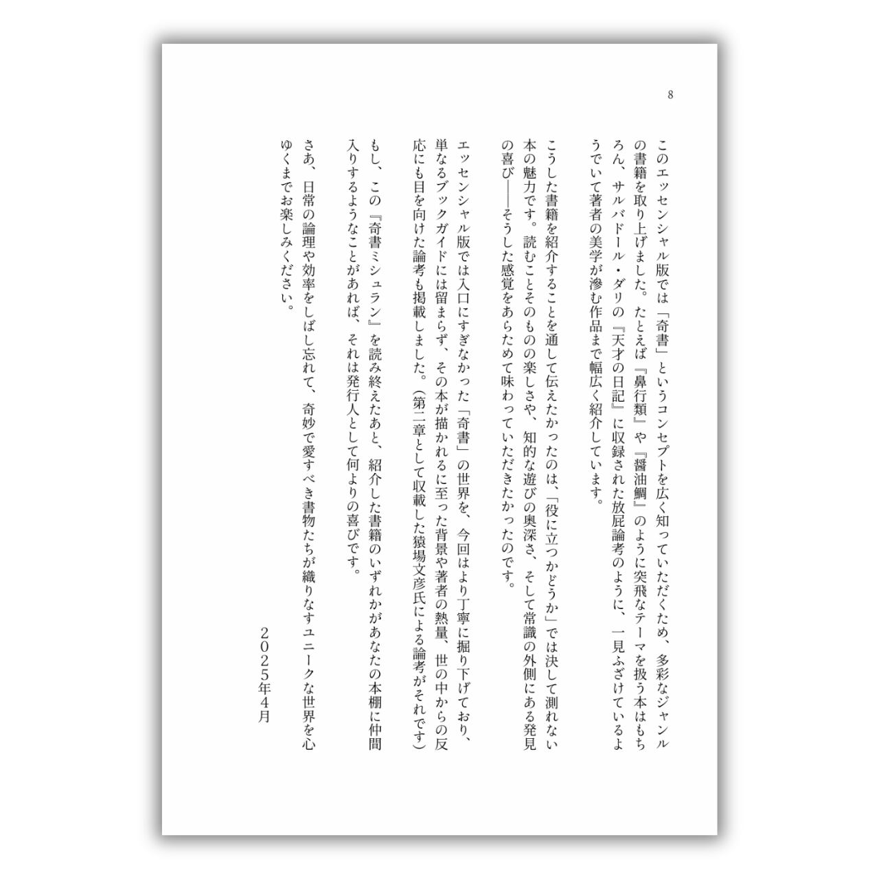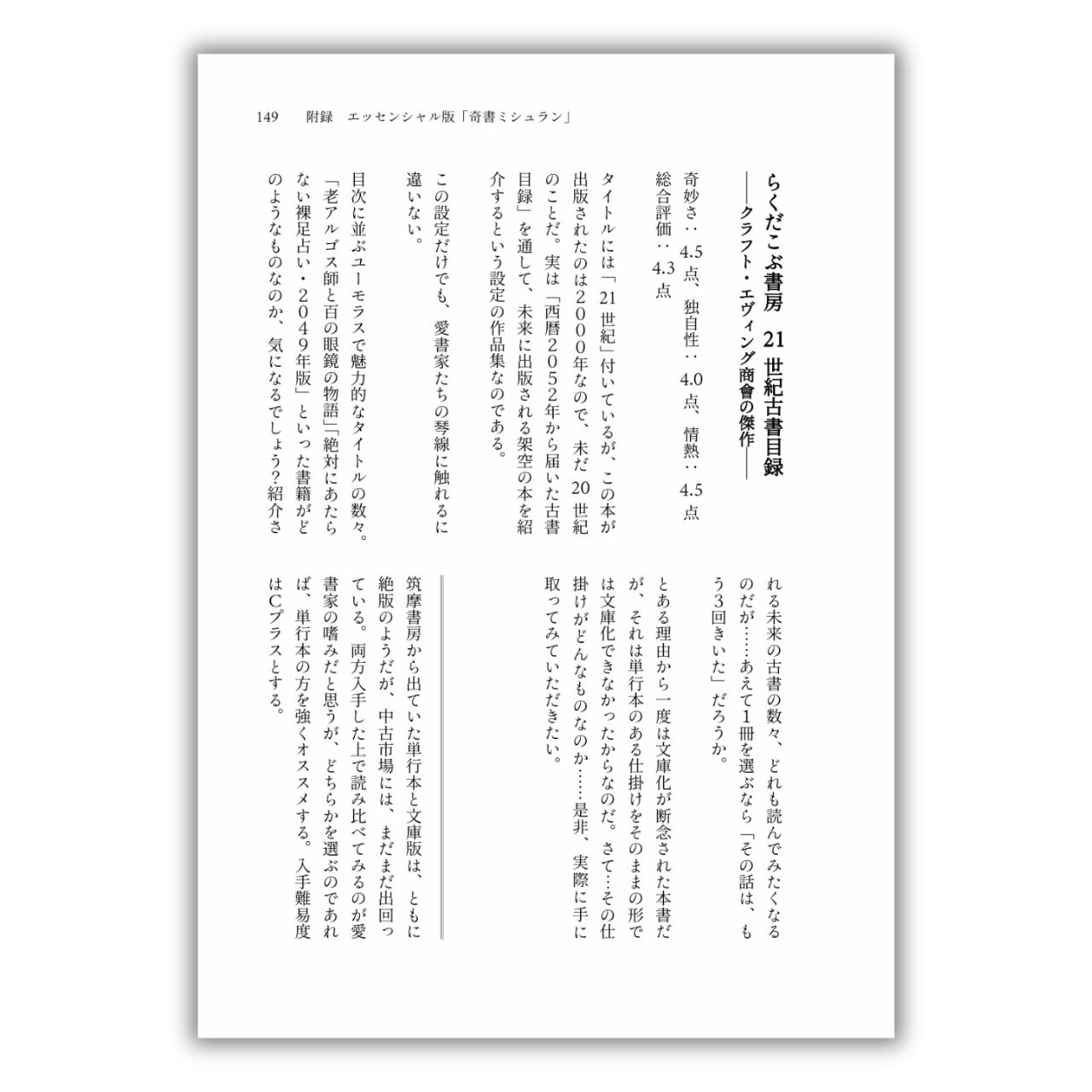 本書は、2024年に頒布された『奇書ミシュラン - エッセンシャル版 -』の内容をさらに充実させた書籍版です。掲載タイトルの拡充に加え、奇書の全体像を俯瞰できるコラムや、このテーマに魅了された読者のための“奇書レコメンドマップ”も収録。単なる書評ではなく、奇書という文化そのものを楽しむための一冊に仕上げました。